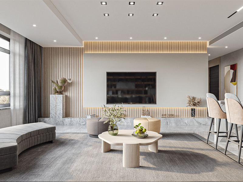 本案采用现代法式风格,以暖米色、木色等柔和色调为主旋律,融合法式浪漫的线条元素与现代简约的质感表达,营造出优雅且舒适的居家氛围。
