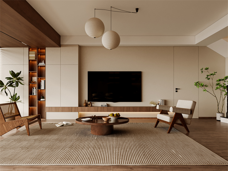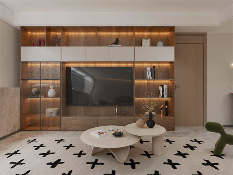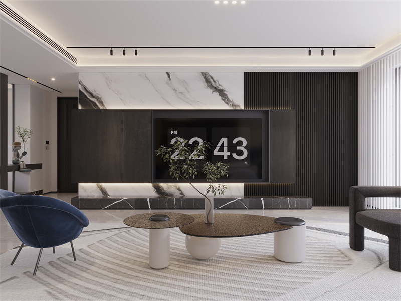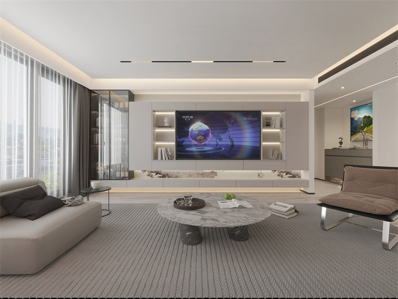 本案采用现代简约风格,主色调以柔和的灰白、木色为主,搭配少量亮色点缀,营造出简洁明亮又不失温馨的氛围。无论是休闲娱乐、亲友相聚,还是阅读办公、休憩睡眠,各空间都能很好地适配多样居家生活,尽显现代简约风格的雅致与实用。