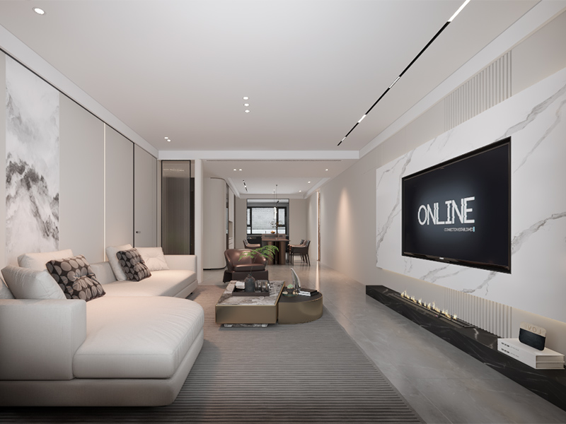 以白、灰为主色调,搭配简洁线条与大理石元素,营造出大气开阔的氛围。柔软的沙发、精致的茶几,适合家人休闲观影,也可与朋友在此畅谈,是居家生活中放松与社交的核心区域。